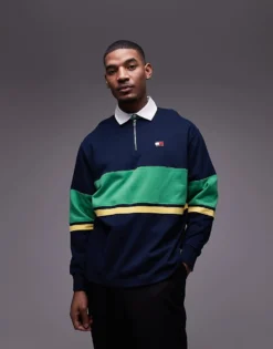 Tommy Jeans Back Mountain Print Long Sleeve Top In Navy For Men Twilight Navy